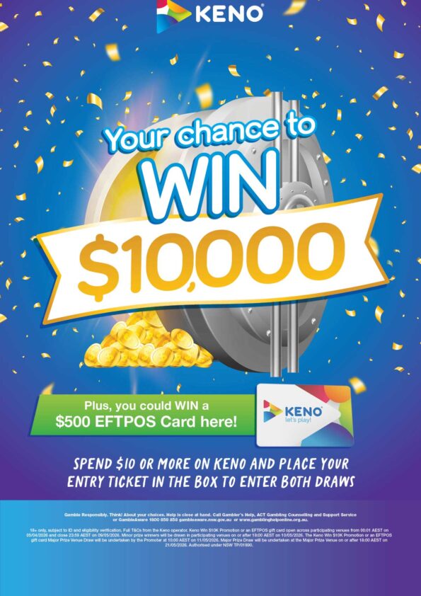 We promote the responsible service of alcohol and gambling – Gambling Helpline 1800 858 858 gamblinghelponline.org.au.
